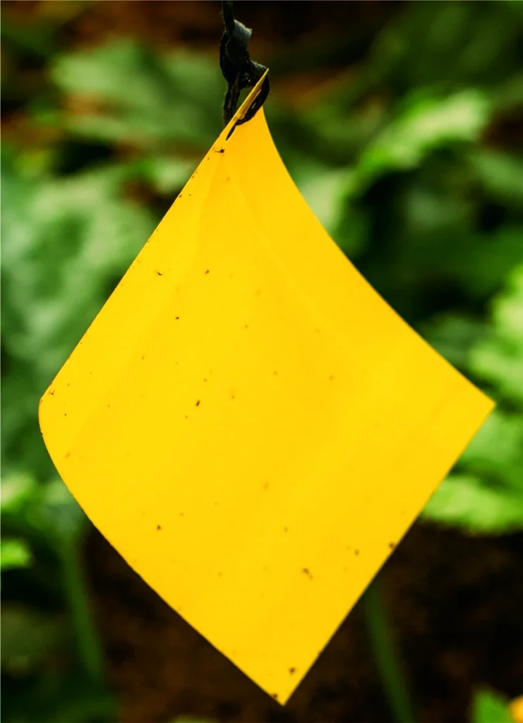 • Zasada działania: Są to arkusze lub taśmy z tworzywa sztucznego w konkretnym kolorze (najczęściej żółtym lub niebieskim), pokryte niewysychającym, nietoksycznym klejem. Kolor wabi owady, które lądują na powierzchni i zostają unieruchomione.